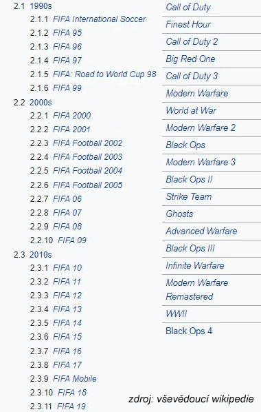 Když už autorům CoD nestačí hrát si na konflikty v minulosti, přesouvají děj s oblibou do blízké budoucnosti nebo alternativní současnosti. Jsem zvědavý, kdy znouzectnost cestování v čase potká i FIFU a dočkáme se nového ročníku hry nejen každý rok, ale i každý měsíc či týden, protože, jak s oblibou o svých notorických titulech tvrdí EA: hráči to vyžadují. Rychle se tak dostaneme k Fifě 2030 s robotickými vysavači coby spoluhráči. Už vidím tu novou feature v popisku hry: Vysavače s AI vyšší než mají skuteční fotbalisté konečně v dresu vašeho oblíbeného mužstva!