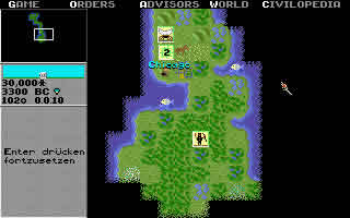 Co že to stačí ke štěstí? V případě Civilizace je toho zdánlivě málo, přesto za touhle sotva megabajtovou hrou stojí takřka celé lidstvo. Od doby kamenné až po hypermoderní budoucnost, provádíte svou svěřenou kulturu a pokoušíte se přežít, posléze expandovat a pak dobýt celý svět, či snad kolonizovat Alphu Centauri? Simulovat celý svět není lehké, proto v Civce fungují velice jednoduchá pravidla a zákonitosti. Osadníci založí střed skoro všeho dění – město a v něm je možné budovat jak sociální vybavení – sípky, chrámy (včetně divů světa), které vám přidávají nejrůznější bonusy, tak vojenské stavby a jednotky. Z okolí města se získávají potraviny, nutné to krmivo hladových krků měšťanstva a suroviny symbolizované štítky. Vše co se ve městě staví spotřebuje každé kolo všechny štítky které město vyprodukuje a teprve bude-li uspokojen požadavek na vyprodukované štítky se stavba či jednotka postaví. Musíte se též starat o daně, financování vědců, a daň z luxusu – velice dobrá věcička která by ČR jen prospěla. Na všechno dění nahlížíte hezky ze shora, jako bůh všemohoucí, vzhlížíte na mapu světa rozdělenou na čtvercová pole, kdy na každém z nich může stát velká symbolicky ztvárněná jednotka či město. Pravda čtverce nejsou hexy, ale tady nejsem v dračím doupěti.