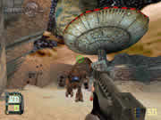 Na rovinu, nenávidím hry bez inter, intro postě do her patří, bez pořádného a stylově udělaného úvodu do děje stojí hra za prd ať už má engine sebelepší. Všeobecná flákavost jak mor zachvátila tvůrce her, kteří se v poslední době až na výjimky nezmůžou na víc, než na intro udělané v enginu hry, a to si to holomkové ještě obhajují a říkají, že je to tak lepší, banda jedna flákavá, šetří na čem může, a mi chudáci hráči přicházíme opět zkrátka. Jediná hra u které je nepřítomnost intra omluvitelná je právě hlaf, když někdo udělá hru stejně dobrou nebo lepší, tak prosím je to machr, ale jinak chci intro (i outro). Jak jsem posléze zjistil Gunmanovo intro je spíše průměrného charakteru, nicméně díky bohu, že to nejsou enginové animace, to bych vážně nepřežil (viz. Project IGI). Nějací vojaci, kteří vypadají asi úmyslně poněkud komicky, bojují na cizí planetě s nějakými vetřelci (kteří vypadají asi úmyslně poněkud komicky). Vojáci oblečení do uniforem made in Válka severu proti Jihu dostávají od cizáků na prdel a utíkají, jejich kapitána při úletu jedna z potvor spolkne i s lodí a nastává ticho. Zni to špatně ale po stránce provedení je Gunmanovo intro obstojné.