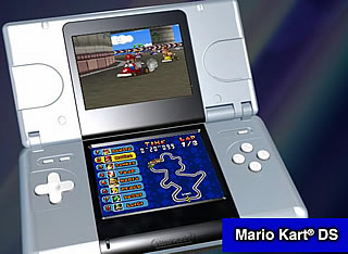 Remake Maria 64 vypadá skoro stejně jako na postarší televizní konzoli Nintendo 64, navíc díky výhodě dvou obrazovek se na obrazovce dolní zobrazuje 2D mapa zatímco na horní sledujete Mariovo veselé hopsání ve 3D světě. Podobně je tomu tak i v dalším remaku – Mario Kart DS, kde na horní obrazovce závodíte v minikárách a na dolní se zobrazuje mapa tratě. Trochu efektivnější 3D grafiku předvádí k DS přikládané demo 3D střílečky Metroid Prime Hunters (plná verze vyjde až počátkem r. 2005), kde je problém s mířením řešen perfektním ovládáním dotykovou obrazovkou.