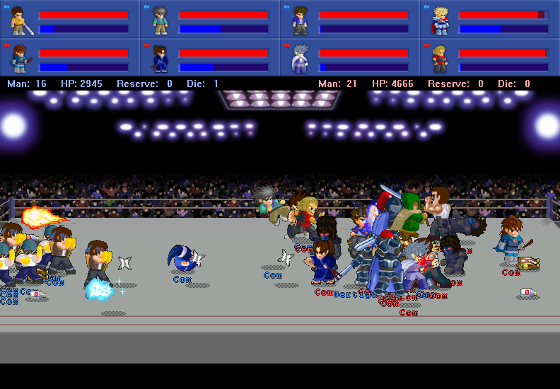 Ukázka Battle Modu, tohle je zrovna jedna z menších bitev. Nějak špatně jsem si navolil týmy, dostával jsem strašně do držky.